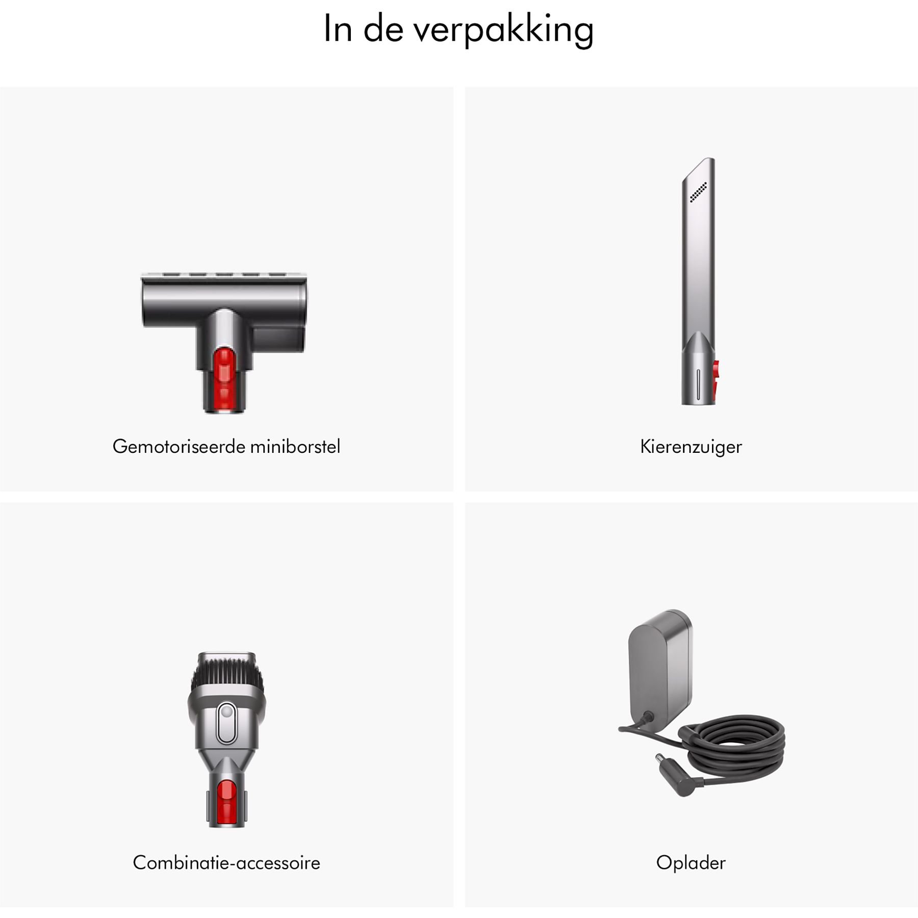 Met een motor die draait op 110.000 toeren per minuut, levert de Dyson Car+Boat een indrukwekkende zuigkracht van 115 Airwatt. Deze kracht zorgt ervoor dat zelfs het meest hardnekkige vuil moeiteloos wordt verwijderd. Daarnaast biedt de geavanceerde 6-cellen accu tot 50 minuten constante zuigkracht, zodat je zonder onderbrekingen je hele huis of voertuig kunt schoonmaken.
