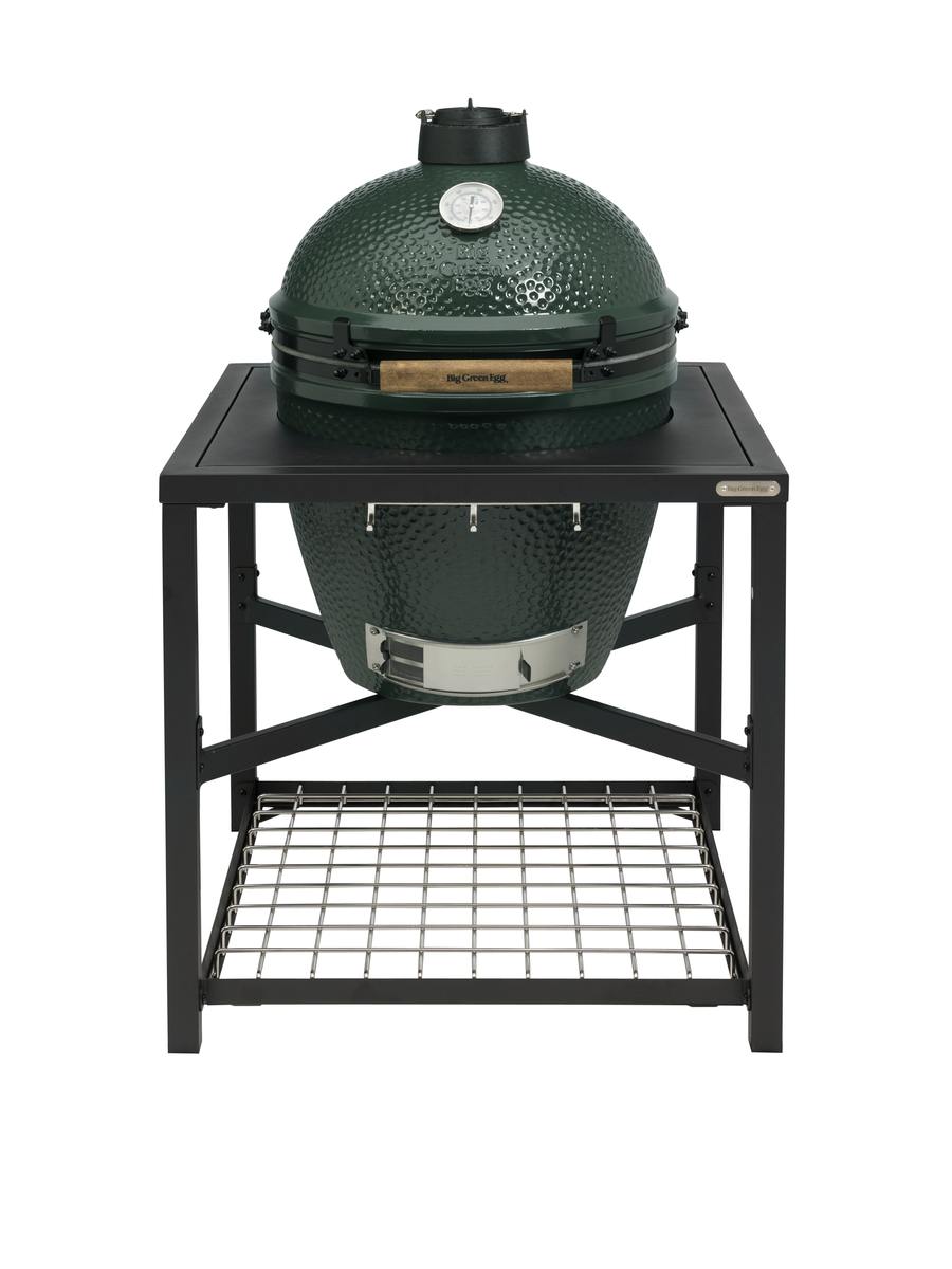 De basis van de Modular Outdoor Workspace van Big Green Egg, inclusief Big Green Egg XL, het RVS grid plateau onderin om je hete conveggtor op te leggen en een rekje met haakjes aan de zijkant.