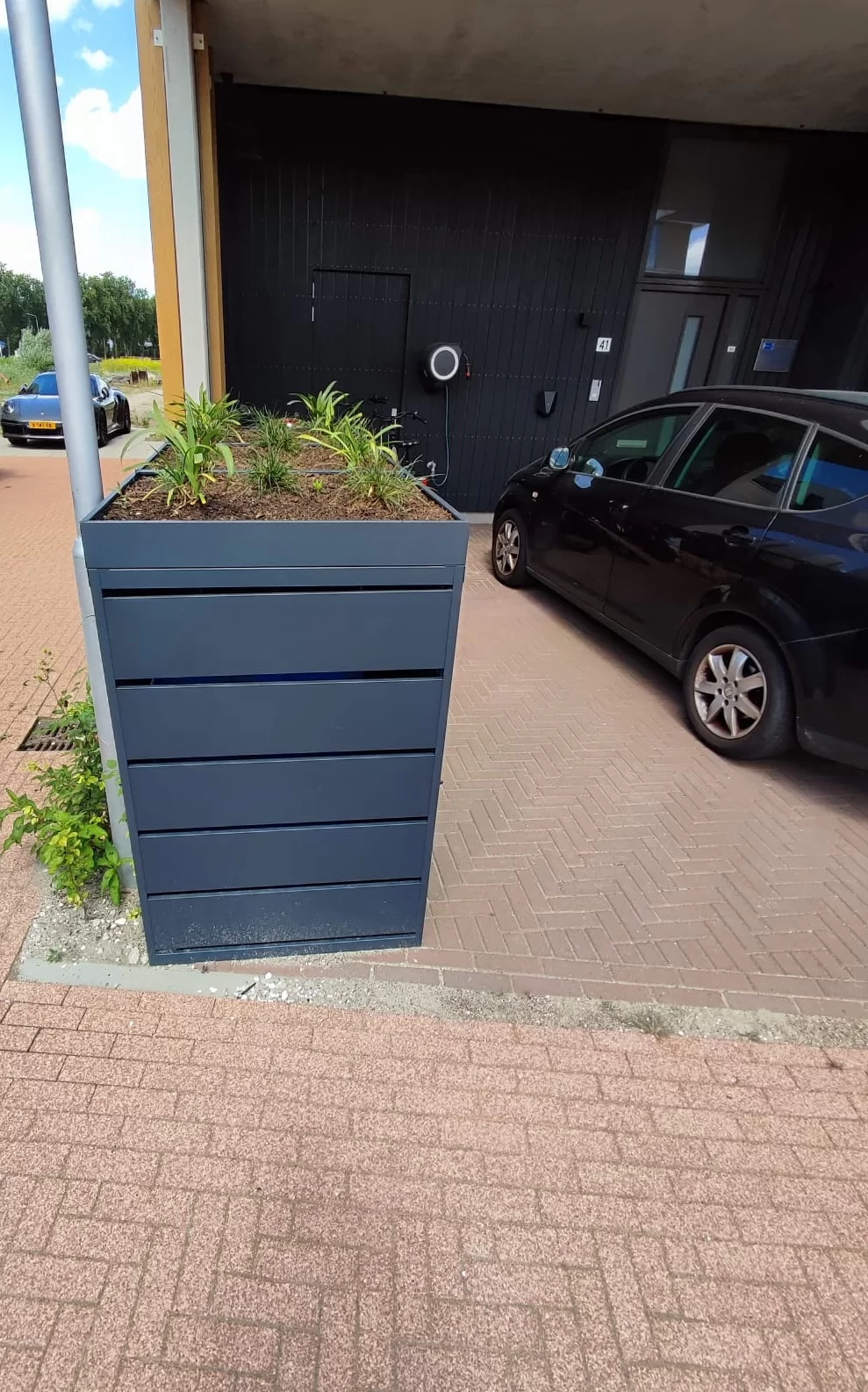 Metaal is eerst verzinkt een daarna gepoedercoat met een structuur coating (in RAL 7016)
