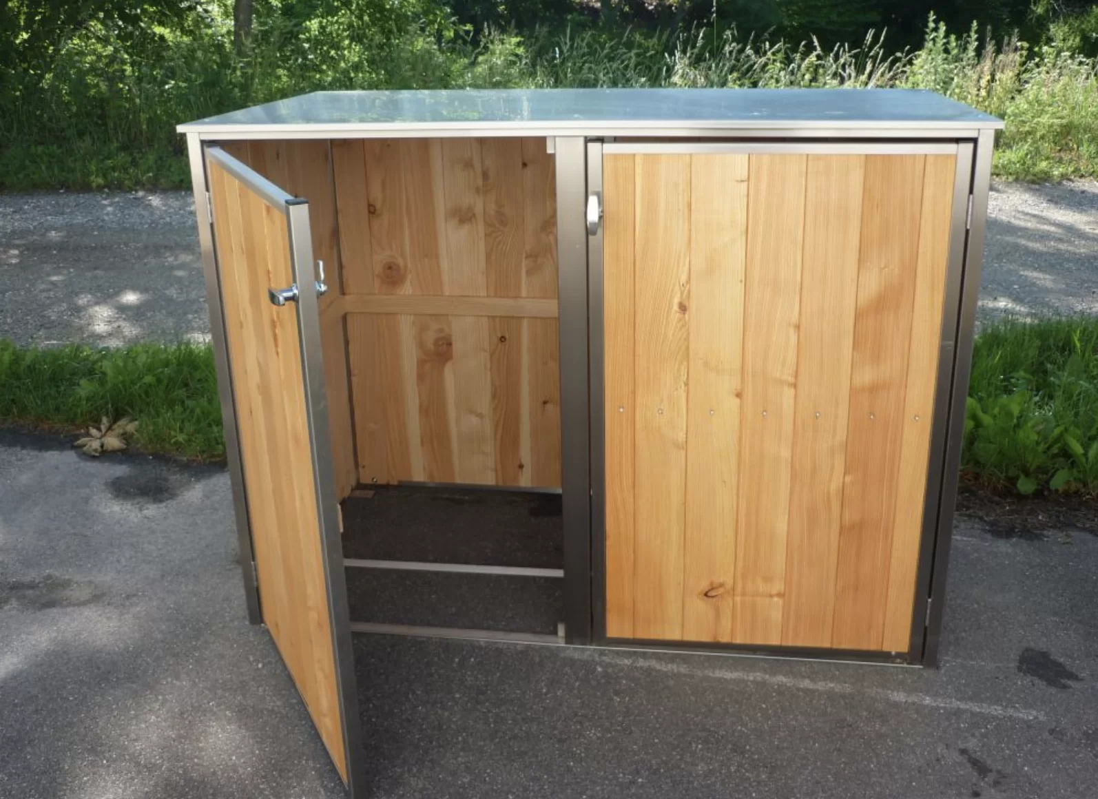 Deuren, zijkanten en achterkant is voorzien van onbehandeld Douglas/Lariks (FSC gecertificeerd)
