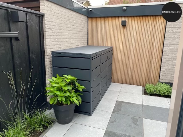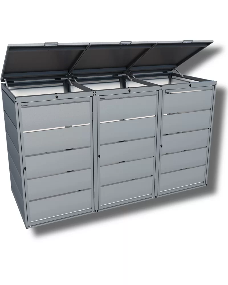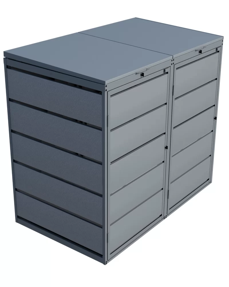 De Kuba Store is een stoere praktische ombouw. Een populaire ombouw om twee afvalcontainers te verstoppen. De ombouw heeft twee gasveren per deksel en is gemaakt van verzinkt staal dat is gepoedercoat in RAL 9007 GrijsAluminium.