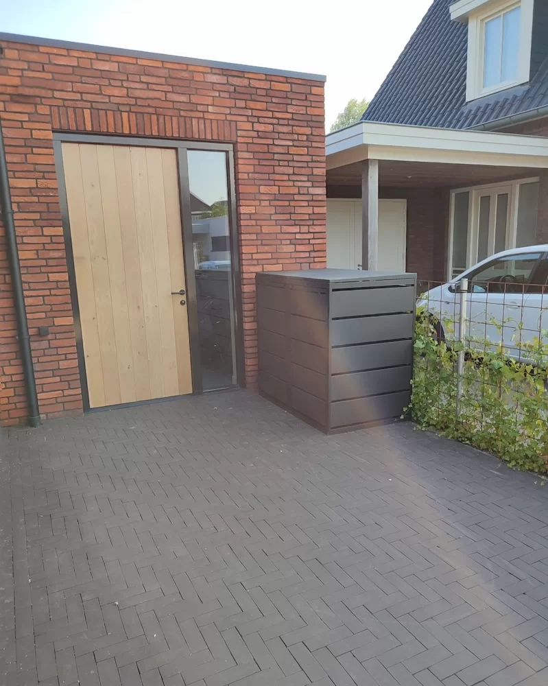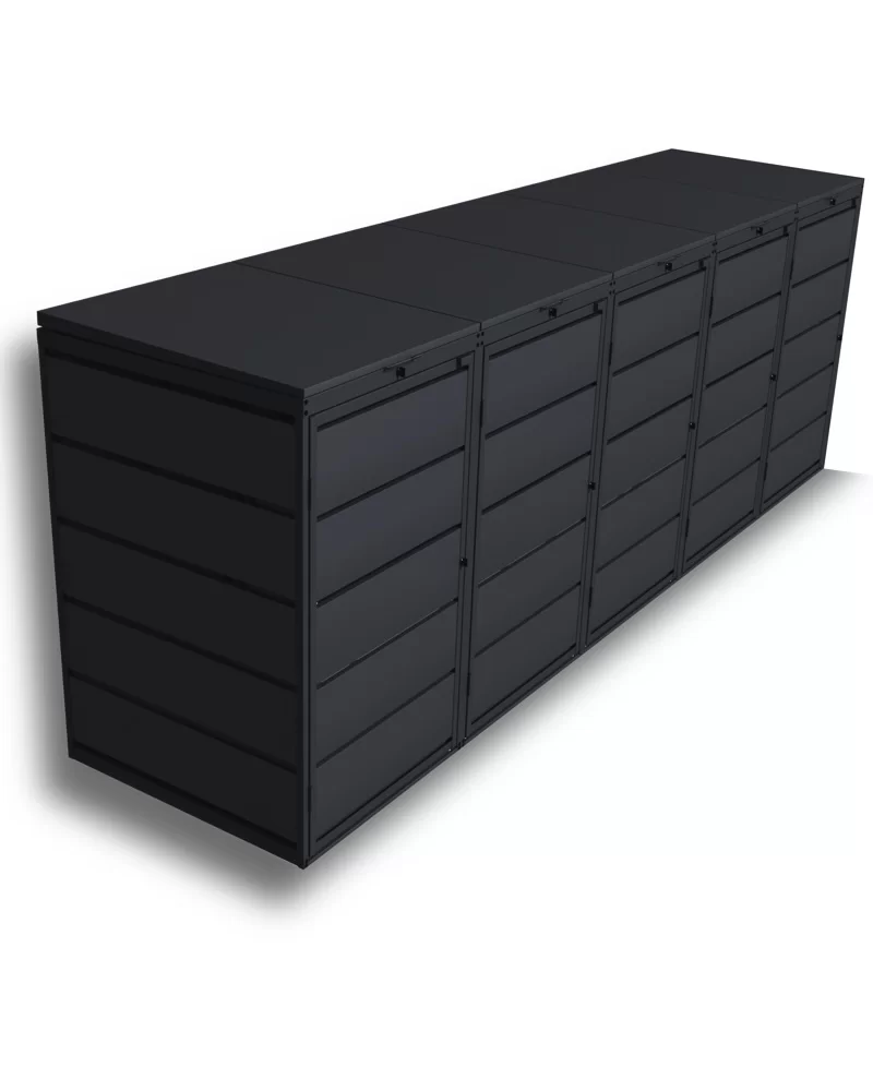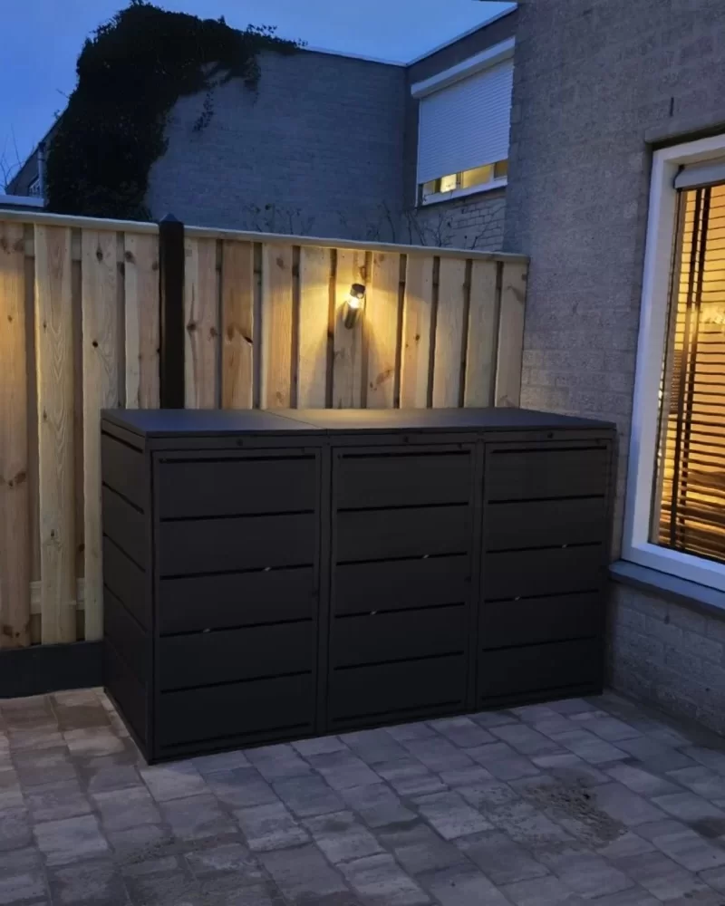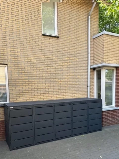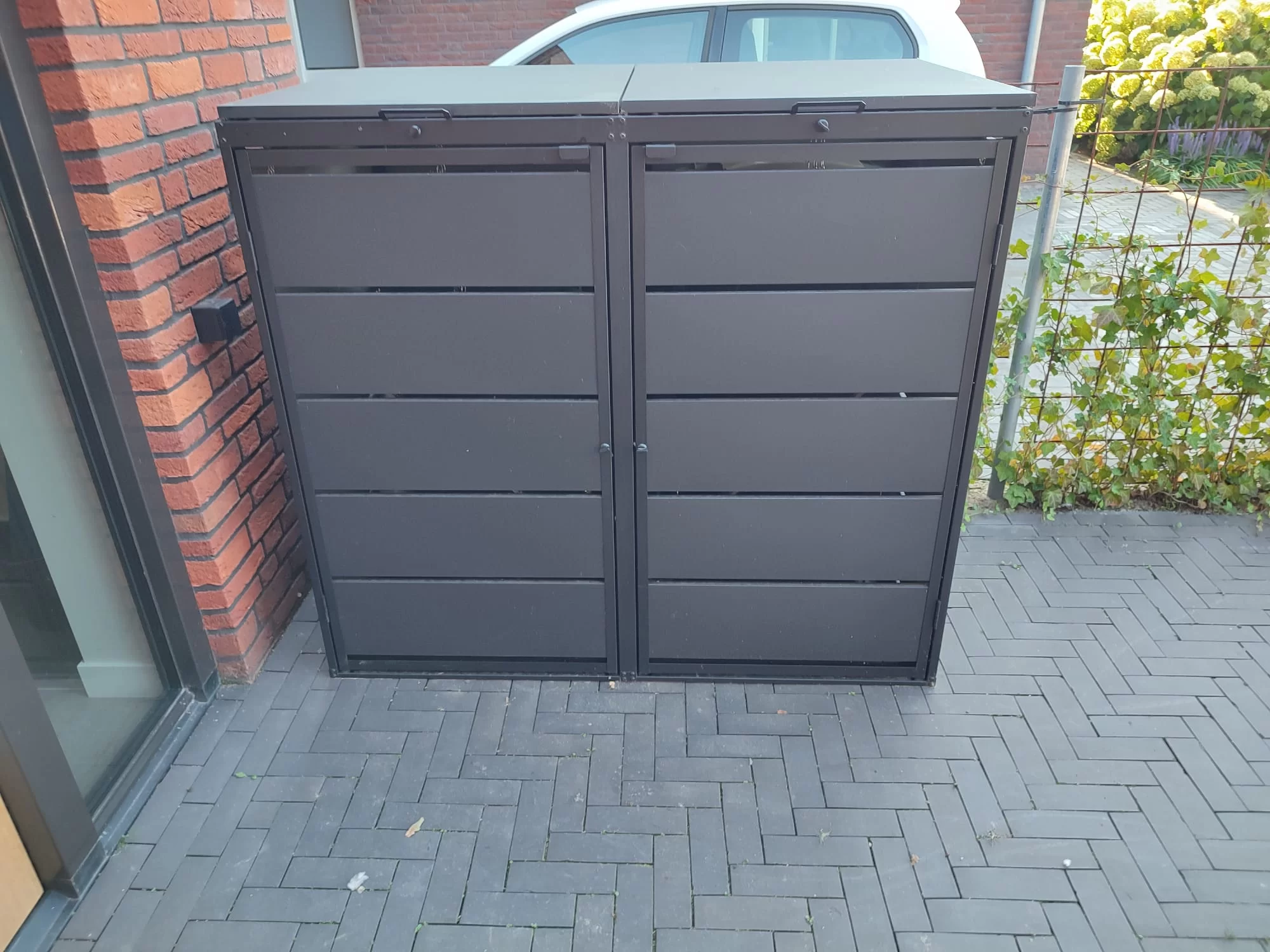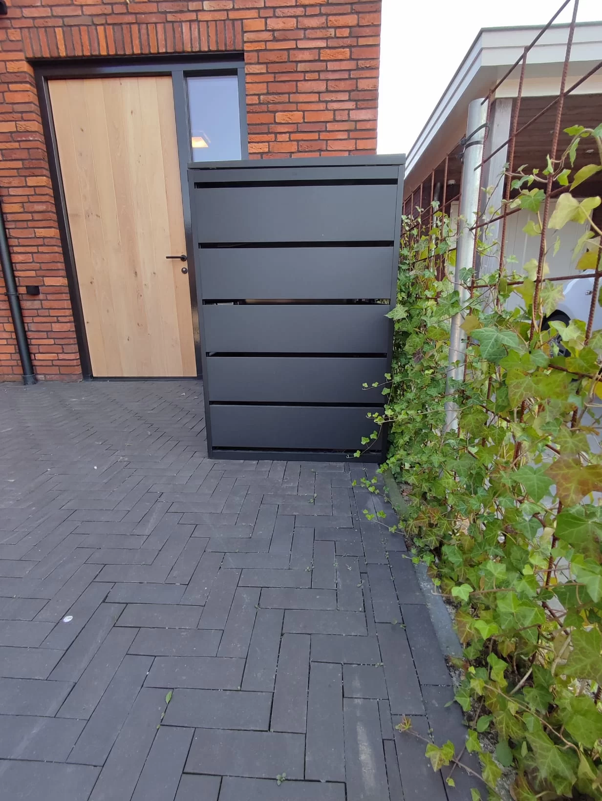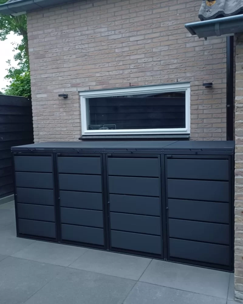 De Kuba Store is een stoere stalen ombouw. Het is een beproefd model die doet waarvoor hij gemaakt is. Namelijk vijf afvalcontainers verstoppen. De ombouw heeft twee gasveren per deksel en is gemaakt verzinkt staal dat is gepoedercoat in het zwart.