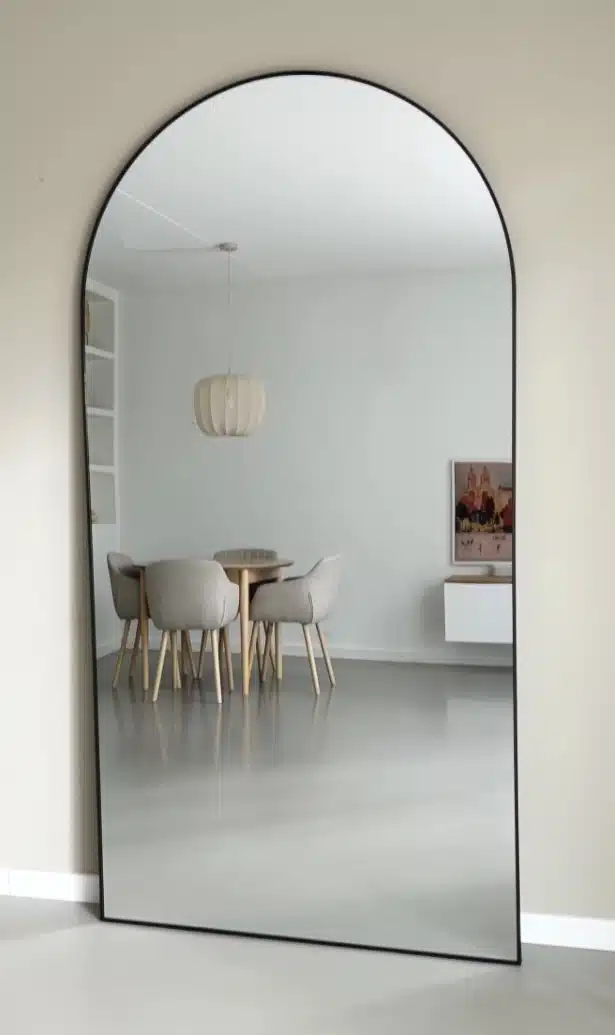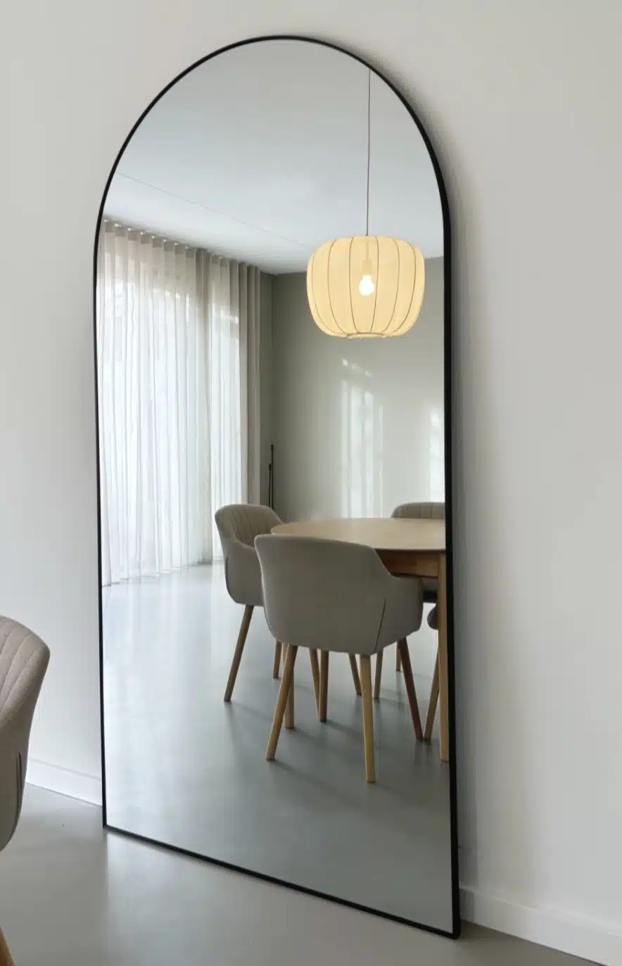 De Maj boogspiegel combineert Scandinavische eenvoud met een zachte ronding aan de bovenzijde, waardoor ze direct rust en balans brengt in elke ruimte. Dankzij het XL formaat van 215×110 cm is deze spiegel een opvallend en stijlvol element in de hal, woonkamer of slaapkamer. Duidelijk aanwezig en met een designuitstraling.