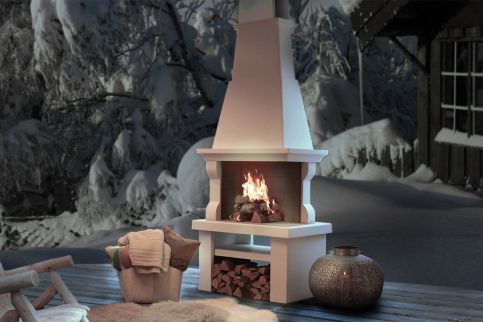 De buitenhaard zorgt voor een warme sfeer op het terras en voor lange gezellige avonden. De haard is gemaakt van licht beton, en hij is eenvoudig te plaatsen.