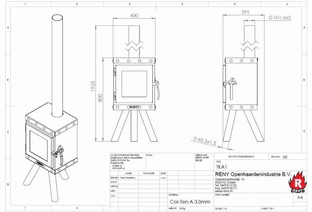 De Reny Piquia is opgebouwd uit sterk Cor-Ten plaatstaal. De Piquia is voorzien van een deur met glas. Hierdoor ontstaat er een gesloten verbranding, waardoor de verbrandingstemperatuur in vergelijking met een open vuur vele malen hoger wordt. Een hogere verbrandingstemperatuur zorgt voor meer rendement en een schonere verbranding. Bij correct gebruik met de juiste brandstof, blijft de ruit mooi zuiver en ervaren de buren geen hinder.