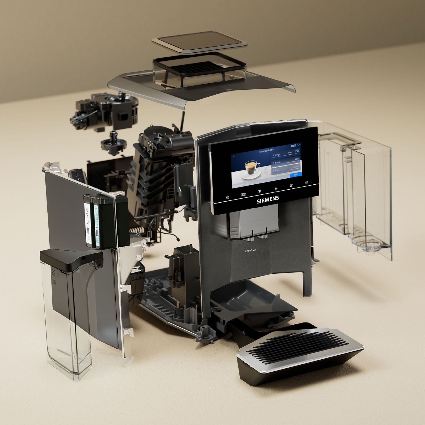 De Siemens EQ900 TQ905RZ5 Dark Inox is een luxueuze volautomatische espressomachine voor koffieliefhebbers die volledige controle willen over hun koffiemoment. Dankzij een combinatie van geavanceerde technologie, fluisterstille werking en een doordacht ontwerp haal je met dit toestel baristakwaliteit gewoon bij jou thuis. Personaliseer elk detail of vertrouw op je opgeslagen favorieten – de EQ900 levert altijd perfect resultaat.