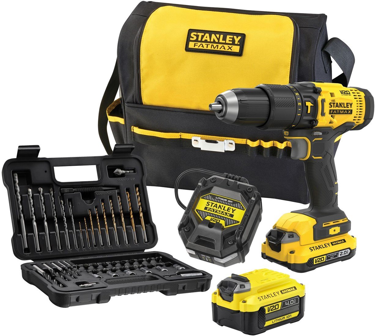 Stanley FATMAX SFMCD711DMA V20 KIT: 18V 1×2.0Ah 1×4.0Ah Schroefklopboormachine met 2 accu’s en 50-delige accessoireset